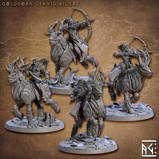Goldhorn Cervid Riders | Large | 32mm | Noble Alfar | Artisan Guild | Dungeons and Dragons | TTRPG | High Quality Miniatures