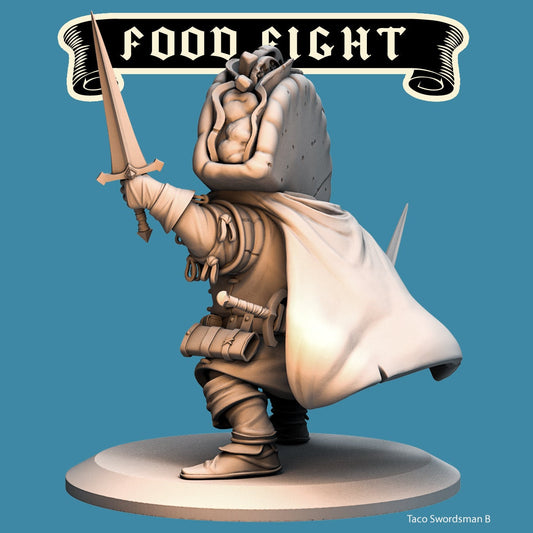 Taco Swordsman | Food Fight | 32mm or 75mm Scale | Dungeons and Dragons | Suitable for Children Games