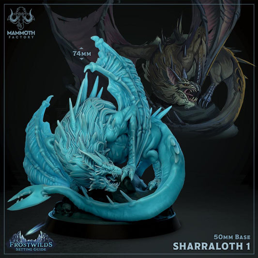 Sharraloth | Frost Dragon | 3 Options | 50mm Base | Medium | Dungeons and Dragons | 8k Resin Quality | Frostwilds | Mammoth Factory